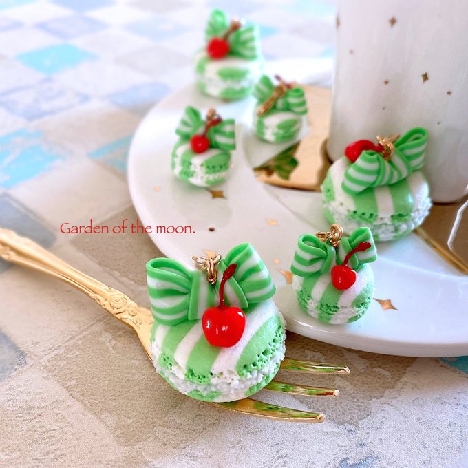 クリームソーダをイメージした縞々のマカロンができました✨どちらのサイズもネックレスに仕上げます。 4/3(日) #ゴスロリマーケット @Goth_LoliMarket (ラヴィドリュクス @LaVie_de_Luxe ブースに委託) 会場:WITH HARAJUKU 前売り券についてはこちらから↓ gothicandlolitamarket.themedia.jp #GLM6