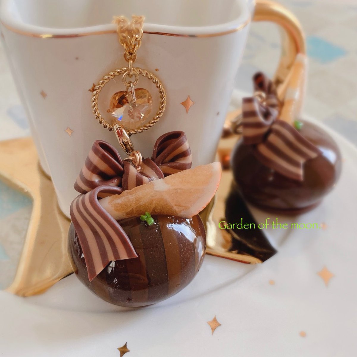 艶々のチョコムースにスライスオレンジとチョコリボン、彩りにクラッシュピスタチオを添えたケーキができました🍊🍫ネックレスに仕上げます。 作品の詳細はツリーへ→ 4/3(日) #ゴスロリマーケット @Goth_LoliMarket (ラヴィドリュクス @LaVie_de_Luxe ブースに委託) 会場:WITH HARAJUKU #GLM6