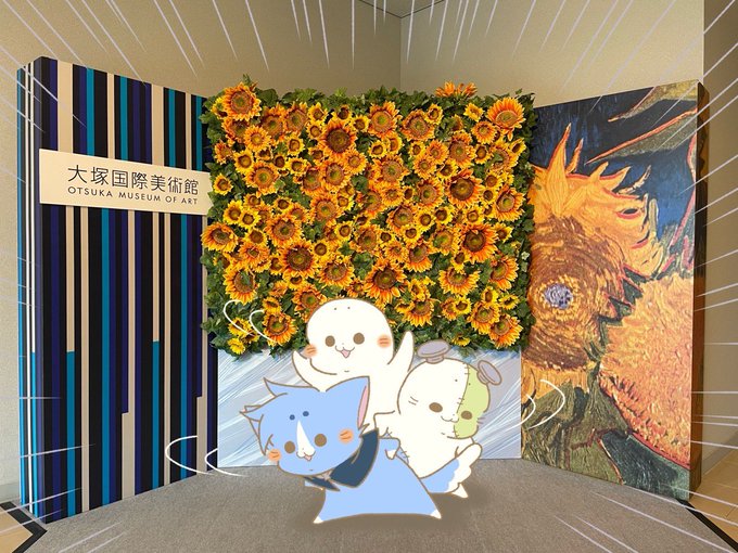 美術館では静かにしましょう。 #ぼくたちポンコツ3人組 #イラスト #イラスト好きさんと繋がりたい #大塚国際美術館 #otsukamuseumofart #アザラシ #ゴッホ #ひまわり #sunflower #gogh