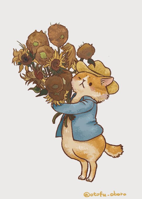 フィンセント・ニャン・ゴッホ ひまわりだいすき #イラスト好きさんと繋がりたい #絵描きさんと繋がりたい #イラスト #illustration #お絵描き #ゆるいイラスト #猫好きさんと繋がりたい #ゴッホ