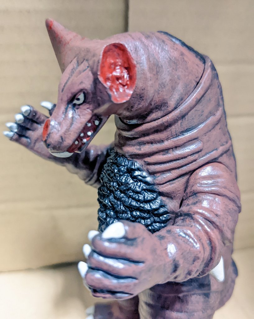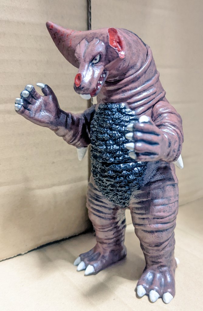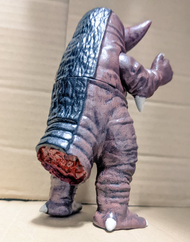 ゴモラ(ラストダメージver) 「怪獣殿下」ラストの傷だらけのゴモラ… 昨日のツイ見てた方々には製作意図が伝わってると思うのです…。 #ウルトラマン #ゴモラ #あなたのソフビ紹介 #ソフビ改造 #造って遊ぼ #ウルトラフィギュア改造同好会