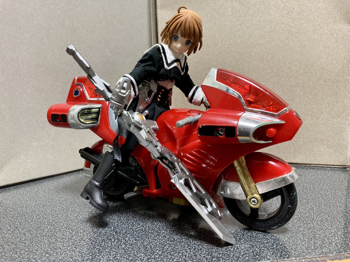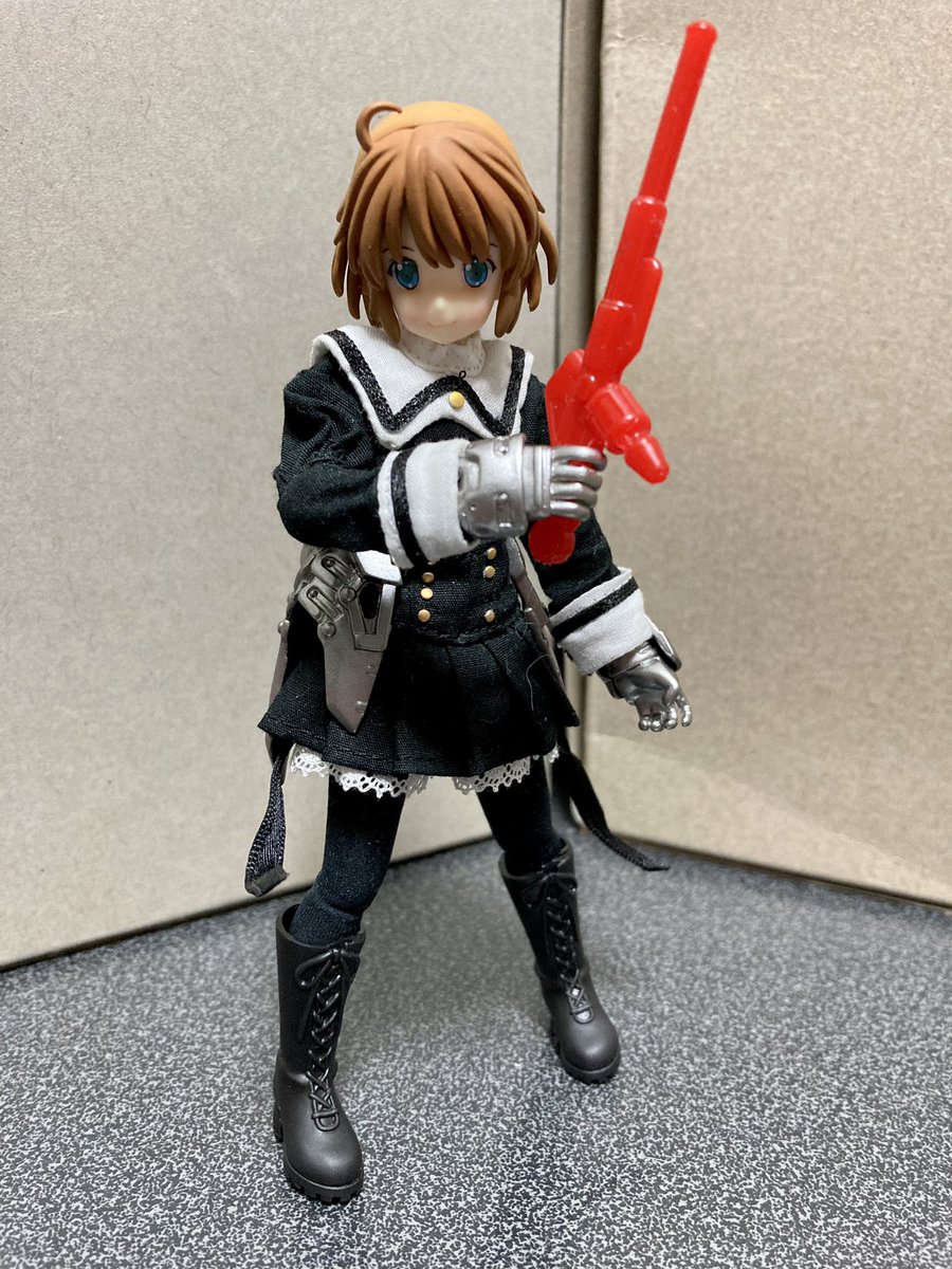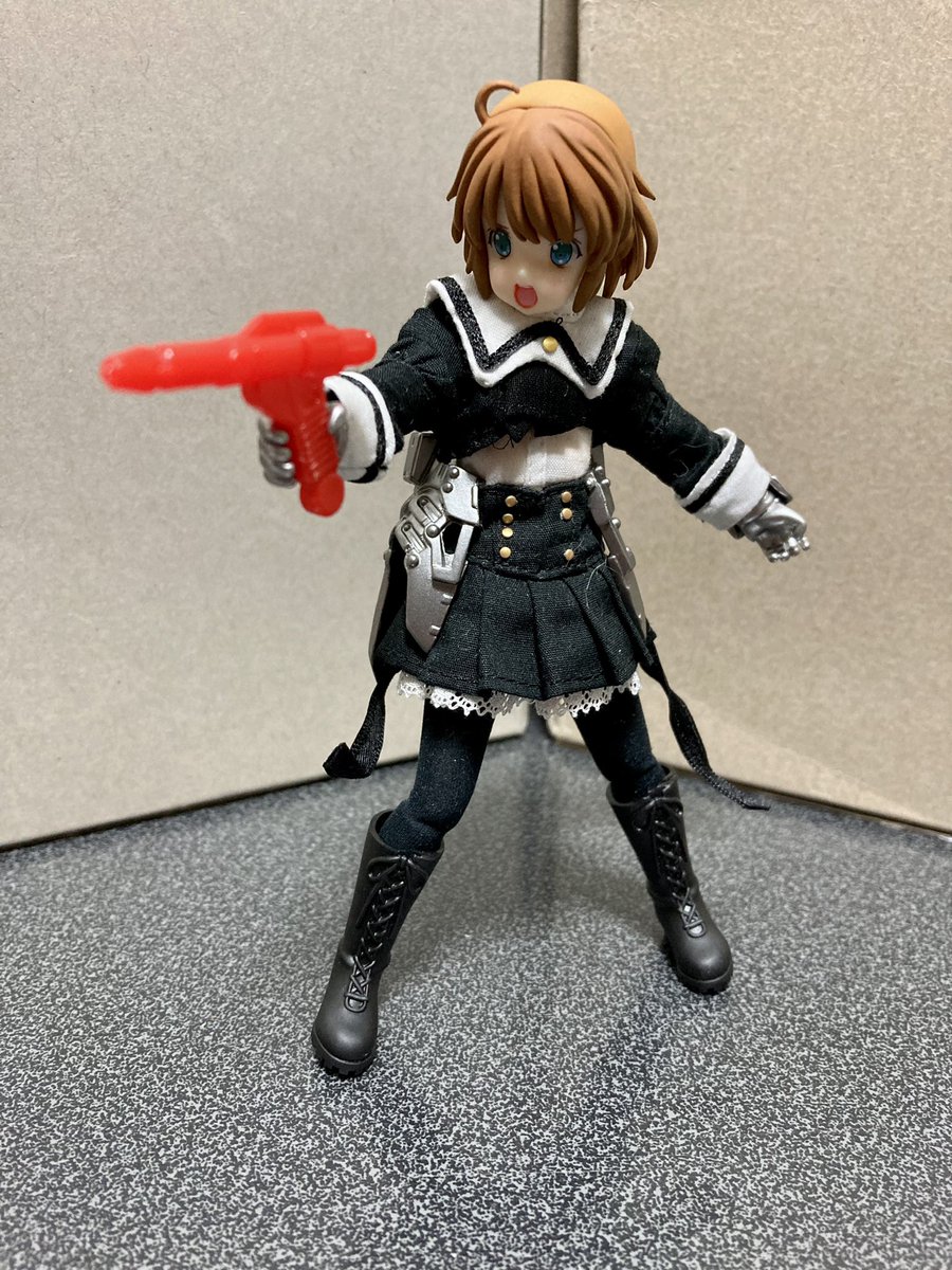 #ゴーゴーファイブ #アサルトリリィ #アサルトリリィドール部 アタッカーポッドをつけて二川二水を乗せてみた。彼女はサイドカーに乗る方がよく似合う。少しキツイですがファイブレイザーも持たせられます。