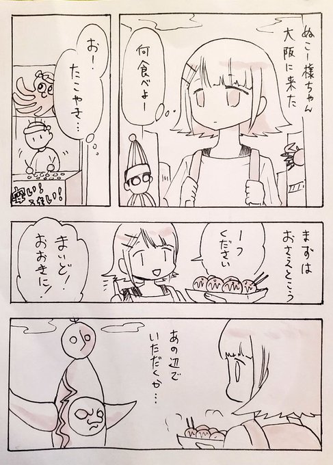 アナログな上、ぬこー様ちゃんの絵日記の持ち味である起承転結の承転が全然思い浮かばなくて起結だけですが😂ぬこー様ちゃんの大阪遠征が嬉しくて気持ちだけでも届けしたくて描かせて頂きました😊 #ゴーストライター様ちゃん