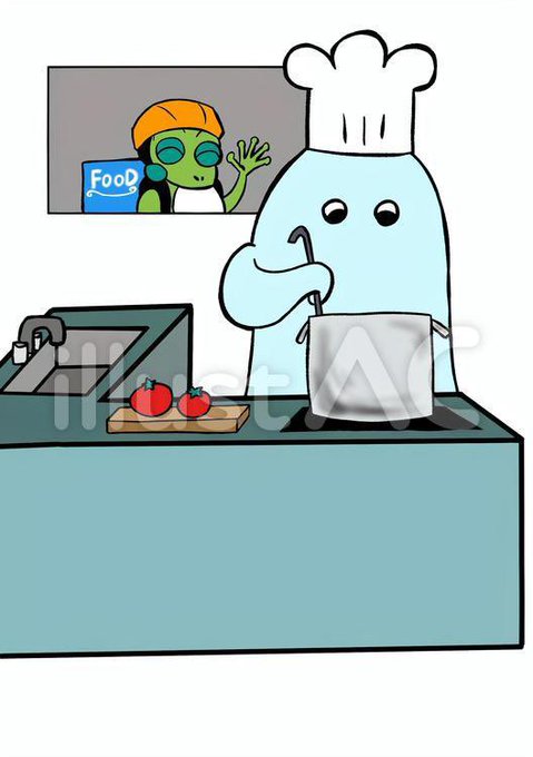 🐸「こんちわー、配達用の商品取りに来ましたー♪」 #イラストAC #カエル #フリー素材 #ゴーストレストラン #絵描きさんと繫がりたい #イラスト好きな人と繋がりたい 👻ac-illust.com/main/detail.ph…