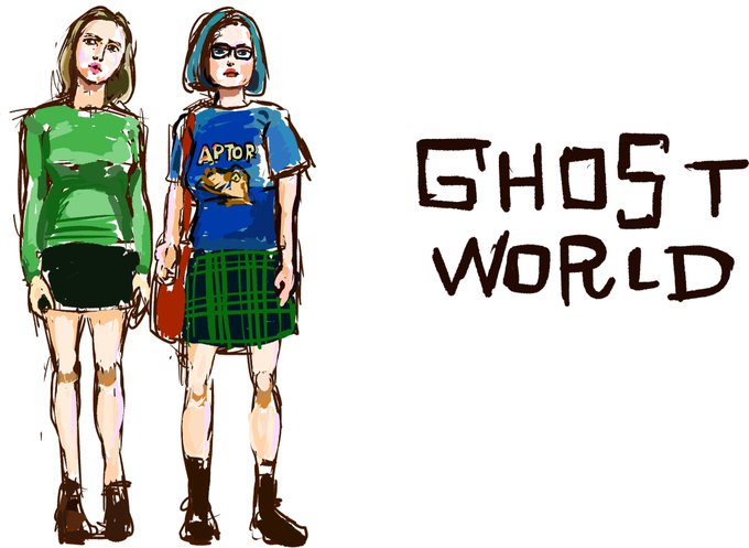 #ゴーストワールド #ghost_world #illustration #イラスト イーニド(右)の生きづらさがブッ刺さる懐かし映画。 ファッションもとにかくかわいいし、どんどん無難な大人になってくレベッカ(左)と真逆を行こうとするイーニドがホントイタ可愛いんよな。 一度描いてみたかった。