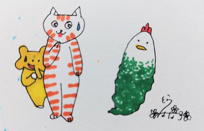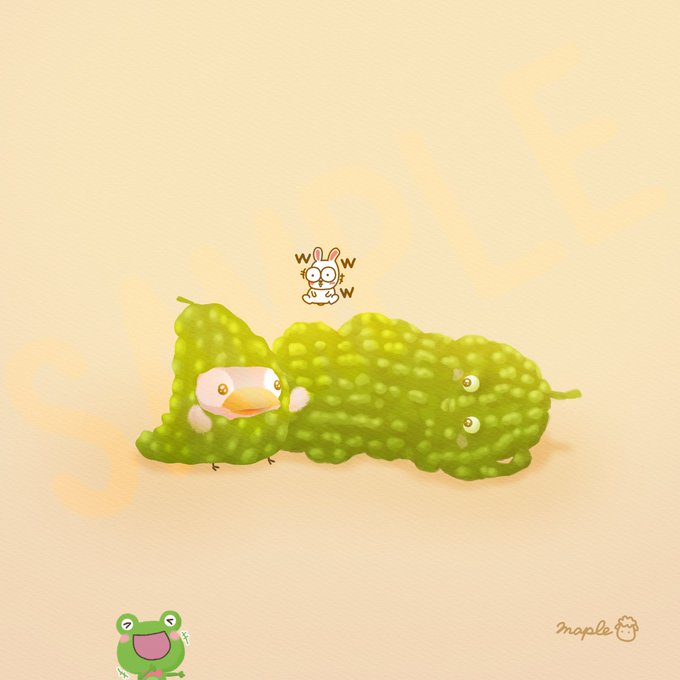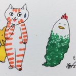 おはようございます!! #ゴーヤーの日 ニ、ニワちゃんがー!!! ゴーヤー化するニワちゃん!!😱 今日も素敵な月曜日を〜🤗 #絵描きさんと繋がりたい #みんなで楽しむTwitter展覧会 #イラスト #油性ペン #マッキー画