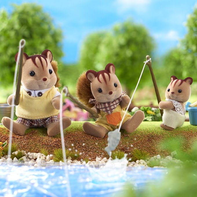今日はみんなで #釣り に来ました🐟 「なかなか釣れないね~」 「そうだね、場所を移動…」 「ぅわぁ!!」 なんと最初に魚を釣ったのはアンブローズ! 「やったー!」 アンブローズはとってもうれしそうです😊 #シルバニアファミリー #シルバニア #ゴールデンウィーク #おでかけ