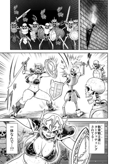 何枚か描いてる内にビキニアーマーちゃん動いてる所ももうちょっと描いてみたいと思って軽い気持ちで漫画で描いたら超時間かかった。 #GWはフォロワーさんが増えるらしい #ゴールデンウィークSNS展覧会2022 #創作漫画