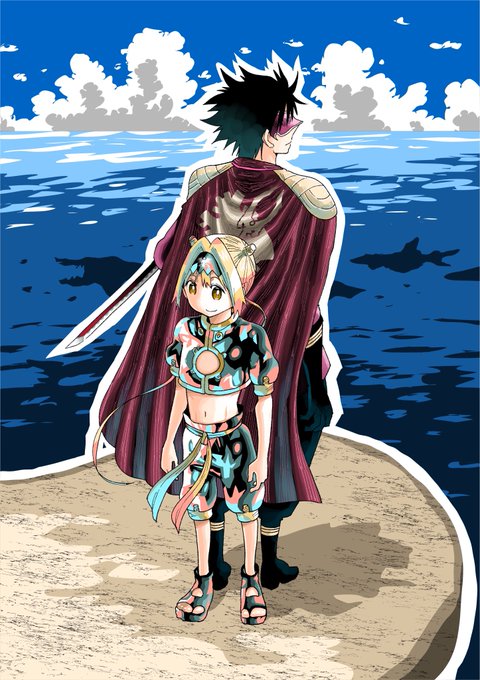 デザイン前の1.2巻の表紙絵。 ザビのマント、ガロの靴底に差し色入れてます。 どちらも背景は魚眼を意識して描きました。 3巻はnow printing。予約受付中です! amzn.to/3fxAmDj #GOLDENSPIRAL #ゴールデンスパイラル