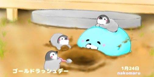 #今日は何の日 ————— #1月24日 ————— #ゴールドラッシュの日 #ゴールドラッシュデー キラキラ…💰 ————— #おっぽーイラスト #おっぽーの今日は何の日 #おっぽさんとこっぽちゃん #1日1絵