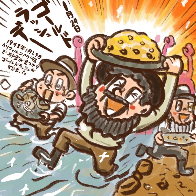 ☀️🙋♀️おはよう TAMA-METALちゃんからです。今日の記念日は 『ゴールドラッシュの日』 (↓続き有るよ🍀) #ゴールドラッシュデー #ゴールドラッシュの日 #イラスト #イラスト好きな人とつながりたい #イラストレーター #絵描きさんと繋がりたい #絵描きさんとつながりたい #illustrator #일러스트