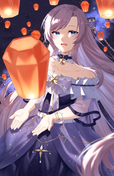 遅くなりました。天灯スーちゃん。 「horoscope」 やっぱりこの子に青は似合ってくれますね~。 改めて見ると青というか・・紺? 何かを誘い込むかのような、蠱惑的な彼女になっていますでしょうか・・? #ゴ魔乙ファンアート
