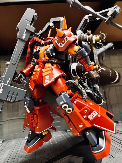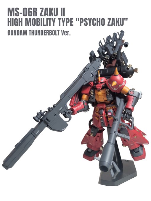 ((*゚Д゚)ゞ ハイ! MG #サイコザク 完成しました⸜( ' ᵕ ' )⸝ 制作期間34日 こんなにかかったのはモンハンのせぃゲフンゲフン 見ていただけると嬉しいです!(卑屈 #ガンプラ #ガンプラの画像貼るとRTされると聞いて #ガンプラは自由だ #gunplaphoto #psychozaku ↓