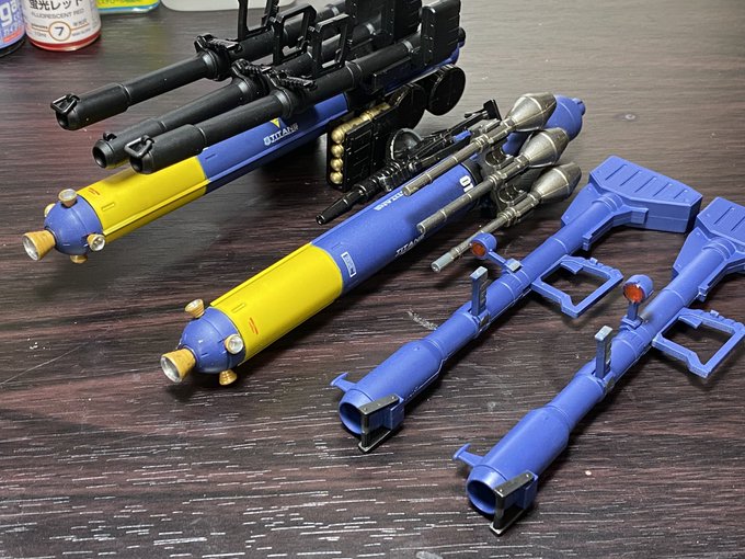 サイコザクさんの、武装一覧!サイコザクのメインな部分なのでカッコいい!あ、ちなみに妖怪パーツ隠しが出まくりで困ってます🥺#ガンプラ #ガンプラの画像貼るとRTされると聞いて #ガンプラ好きと繋がりたい #サイコザク