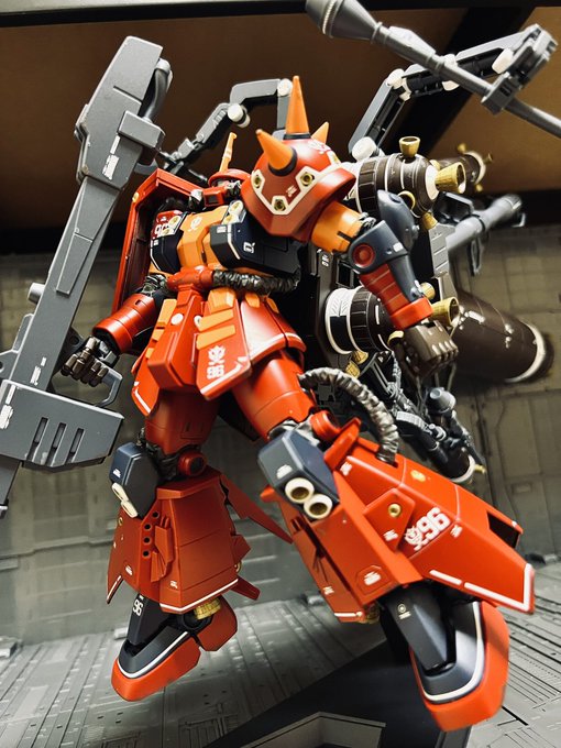 ((*゚Д゚)ゞ ハイ! MG #サイコザク 完成しました⸜( ' ᵕ ' )⸝ 制作期間34日 こんなにかかったのはモンハンのせぃゲフンゲフン 見ていただけると嬉しいです!(卑屈 #ガンプラ #ガンプラの画像貼るとRTされると聞いて #ガンプラは自由だ #gunplaphoto #psychozaku ↓