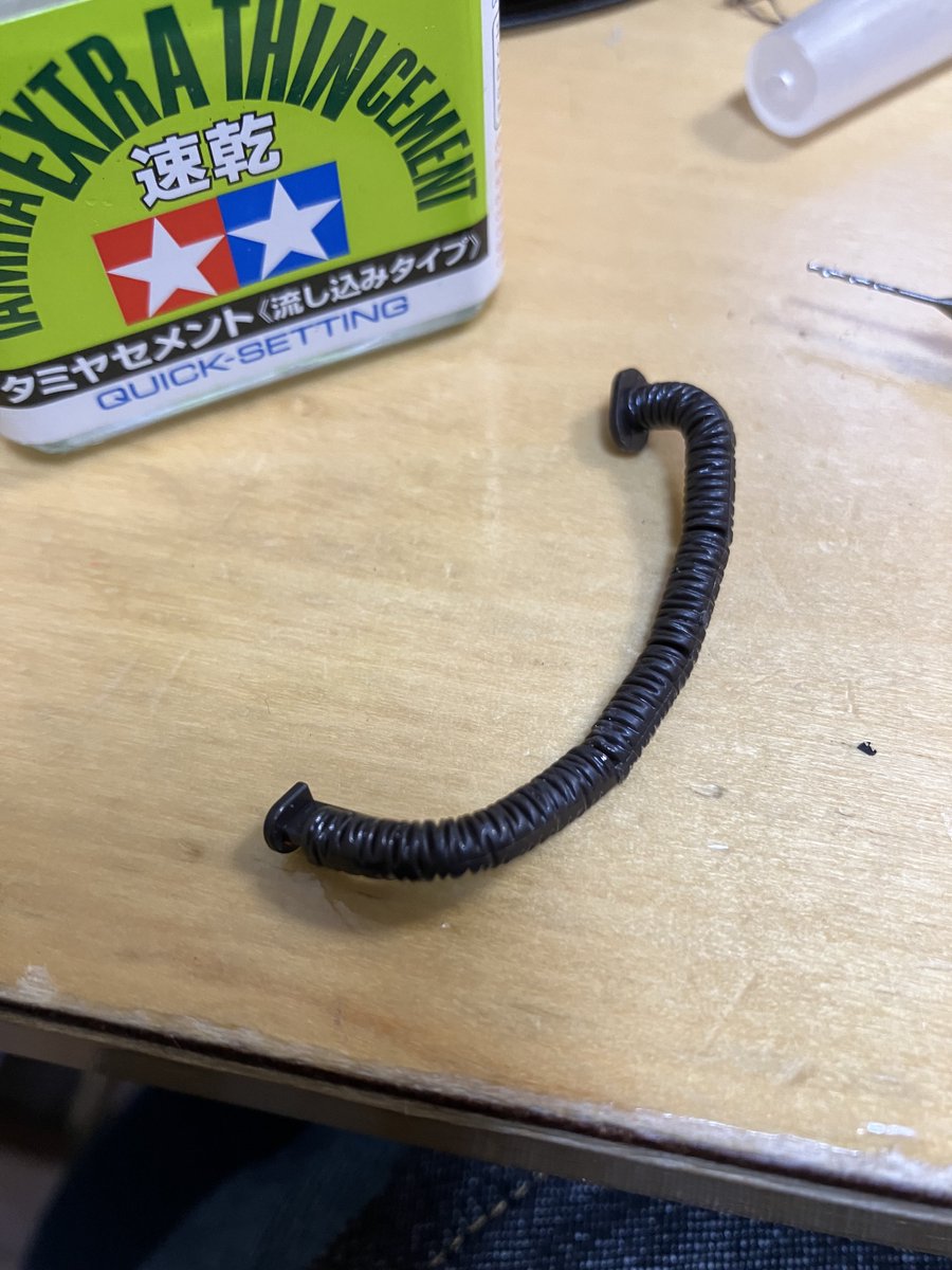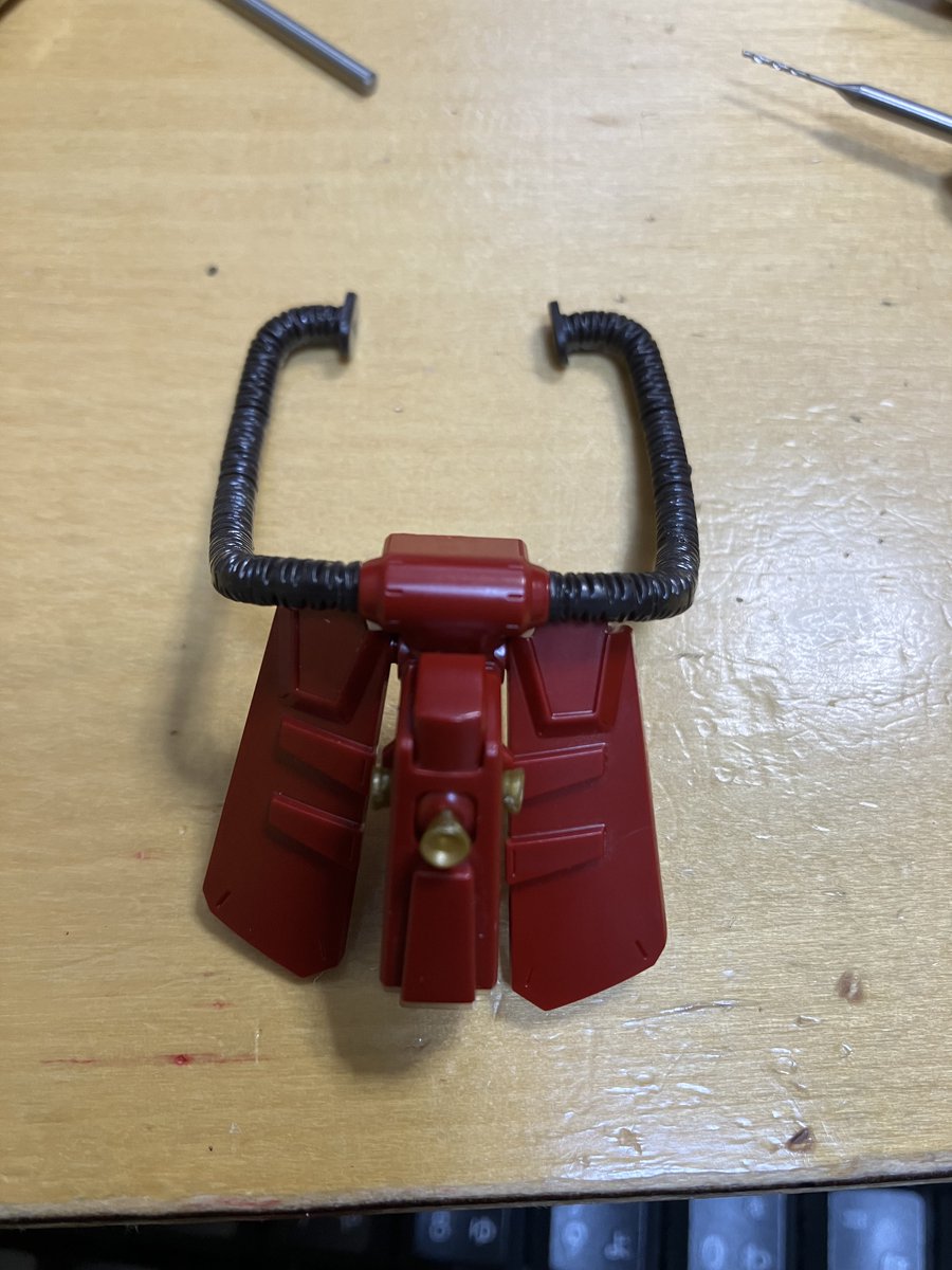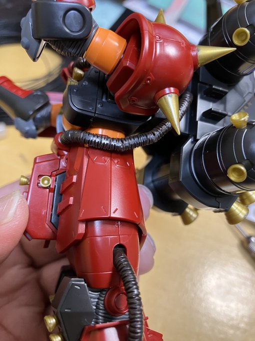 HG #サイコ・ザク のパイプ修復です。 100均の針金と穴開けて差し込んで、 流し込みタミヤセメントで少し溶かしてガッチリ。 慌てない。 慌てない。 元通り。by一休さん。今日はここまで。 ※修復動画など参考にね。 #ガンプラ #ガンプラの画像貼るとRTされると聞いて