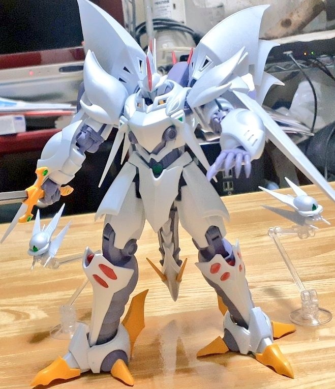 #夜のフィギュア撮影会 お題「風」 煌 め く 風 の 魔 装 機 神 サイバスター マサキ 「たのんだぜ クロ シロ!」 クロ 「わたしたちにお任せニャ」 シロ 「任せるニャ」 #サイバスター #スパロボ #スーパーロボット大戦 #プラモデル