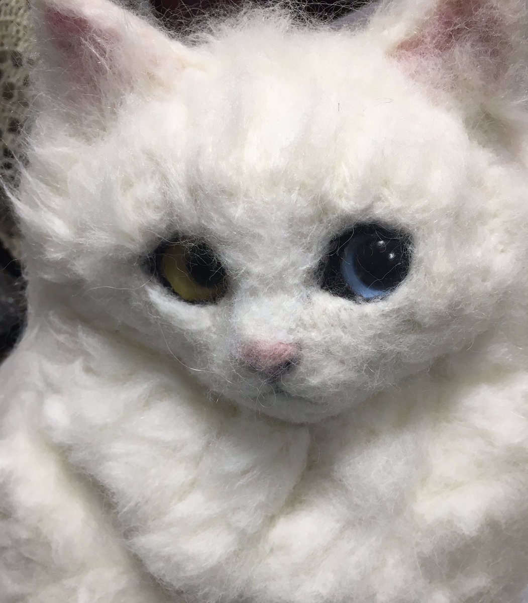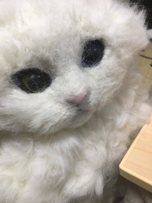だいぶ似てきたと思う〜(〃ω〃)💦 良かった〜どうなる事かと思った☺️ 羊毛とは関係ないけど、ポータブルバッテリーと小型炊飯器も買えたし、これで停電になってもご飯炊ける #羊毛フェルトオーダー #羊毛フェルト猫 #サイベリアン #オッドアイ #ポータブルバッテリー #小型炊飯器