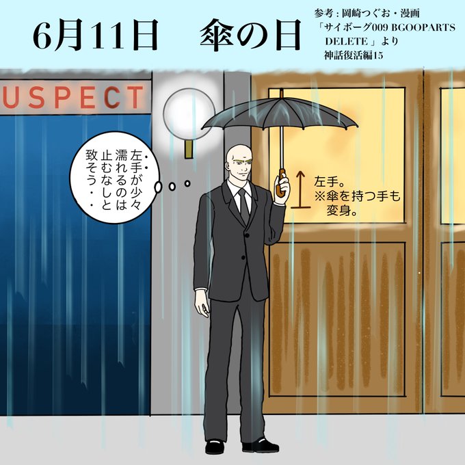明日6月11日は傘の日とのことで。 岡崎つぐお先生の漫画での「左手」には一本取られたと思いました。 絵はなんとなくRE:CYBORG で… #傘の日 #サイボーグ009 #サイボーグ007 #グレート・ブリテン #イラスト #梅雨のカラフル芸術祭2022