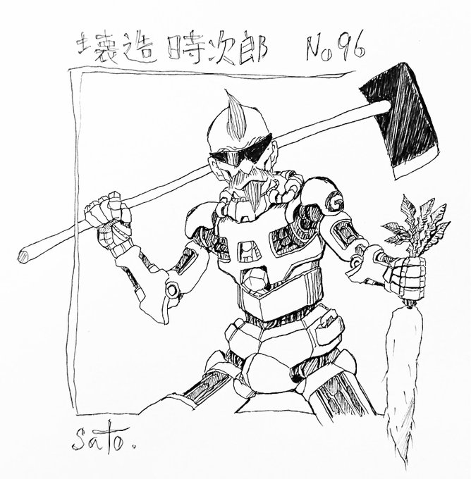 #サイボーグGちゃん #イラスト #落書き DEATH NOTEやヒカルの碁の小畑先生のデビュー作。 原作作画ともに小畑先生の漫画サイボーグGちゃんですが、農作業用に自分自身を改造したじいちゃんが主人公のギャグ漫画。 絵はデビュー作で既に上手い。 内容はブラックで狂ってます。もちろん褒め言葉です。