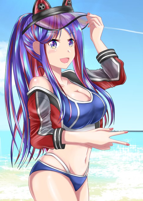サウスダコタ「水着ぃ?ワシントンも?じゃぁしょーがねぇなぁ・・・霧島はやんねーのか?」 バイザーの耳は浴衣と同じく狐なんだろうか? #艦これ #サウスダコタ #艦これ版深夜の真剣お絵描き60分一本勝負 #艦これ版真剣お絵描き60分一本勝負_20211201