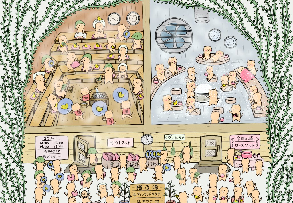 「猫たちがサウナにきた!」✨お絵描き配信で描きました👍 20時にYouTubeにて早送りにした動画をアップしますのでまたお知らせします👍 #サウナ #サウナイキタイ #サウナ女子 #サウナを愛でたい #イラスト #イラスト好きと繋がりたい #絵描きさんと繋がりたい #猫好きさんと繫がりた #illustrationart