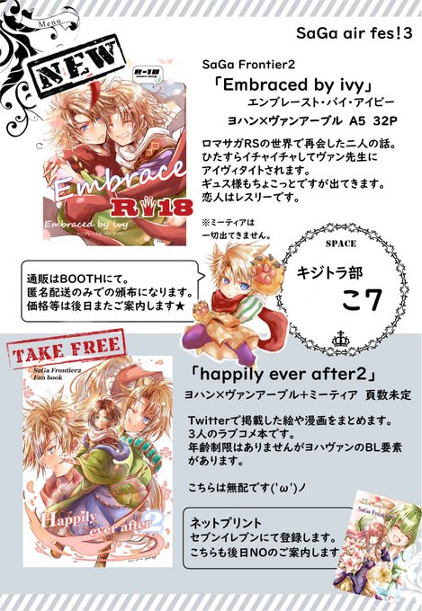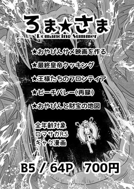 9月12日 #サガエアフェス3 ろま★さま(ロマサガRS・全年齢) ビーチバレー再録・オールキャラギャグ漫画 B5 / 64p / 700円 サンプル(1/2) twitter.com/nacl72306563/s…