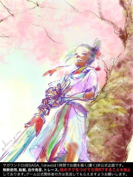 ロマサガ3より。桜の木の下。東方不敗(大剣)と少年。何もかもが雑ッ…アップを躊躇いたくなるクオリティだけどもワンドロだからデジタルおえかき赤ちゃんだからと開き直らせてくださ…桜は花も勿論好きだけど幹のごつごつした手触りも好き。 #サガシリーズ版深夜のお絵描き一本勝負