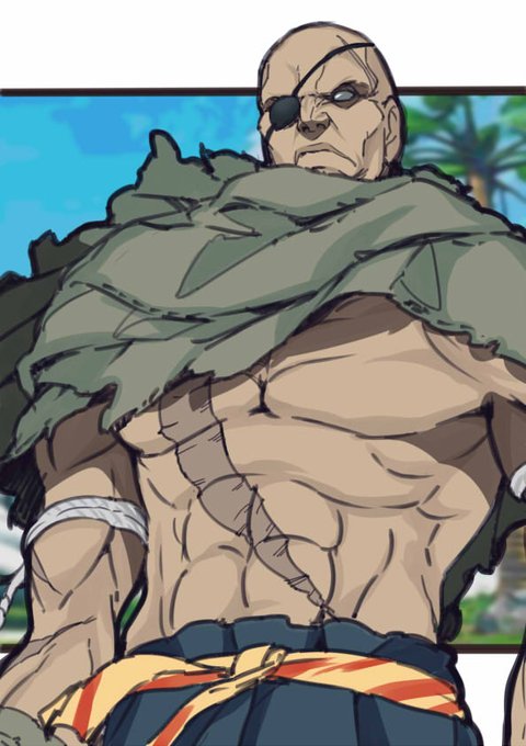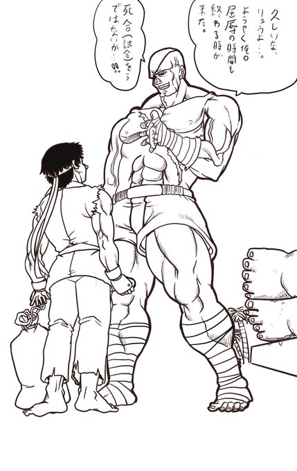 サガットの片思い。 サガットのリュウへの思いはバレンタインの片思い女子のそれ、より何十倍も凄いのに違いないだろうな。 #ストリートファイター #格ゲーキャラ描こうぜ #サガット #リュウ #ストーカー