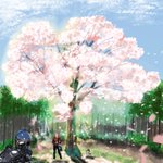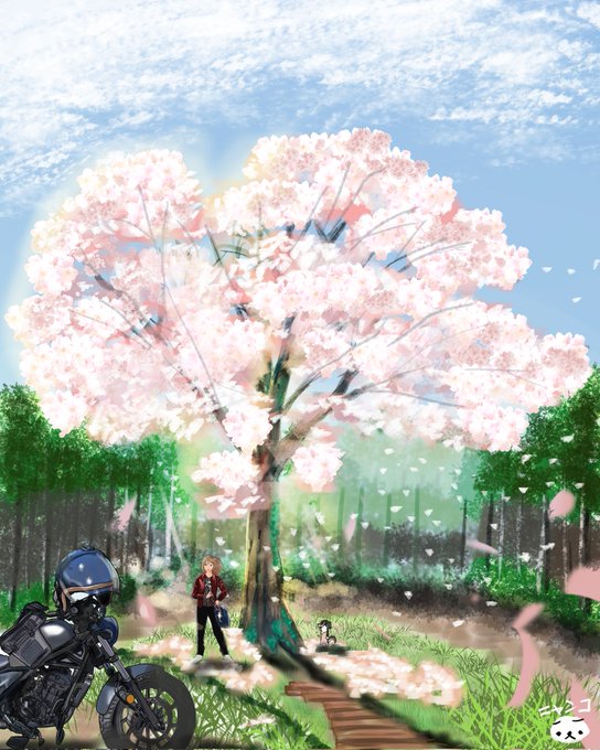 おはよう👋😆今年のサクラも終わりですね😅過去絵でこんなの描いてました。#サクラ #バイク漫画 #イラスト #桜吹雪 #レブル250 #バイク好きと繋がりたい #絵描きさんと繫がりたい #絵柄が好みって人にフォローされたい