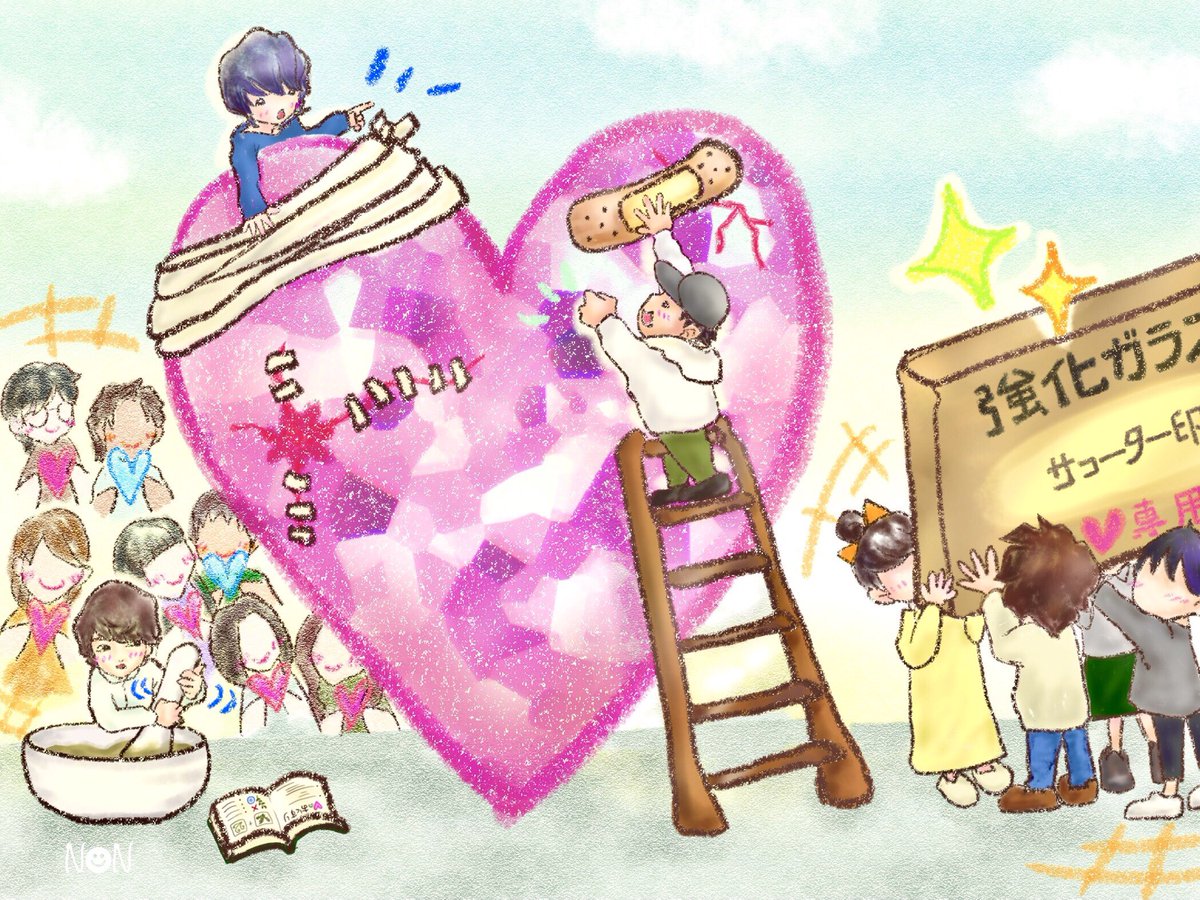 宮迫さんに素敵な仲間が増えますように✨👏🏻(*´꒳`*) #今日の宮迫です #サコーターファンアート 🎨宮迫さん ガラスの♥️…少しは補強できてますか?? @motohage @hiroki_tsuttsun @art_0214 @oryo_oryo