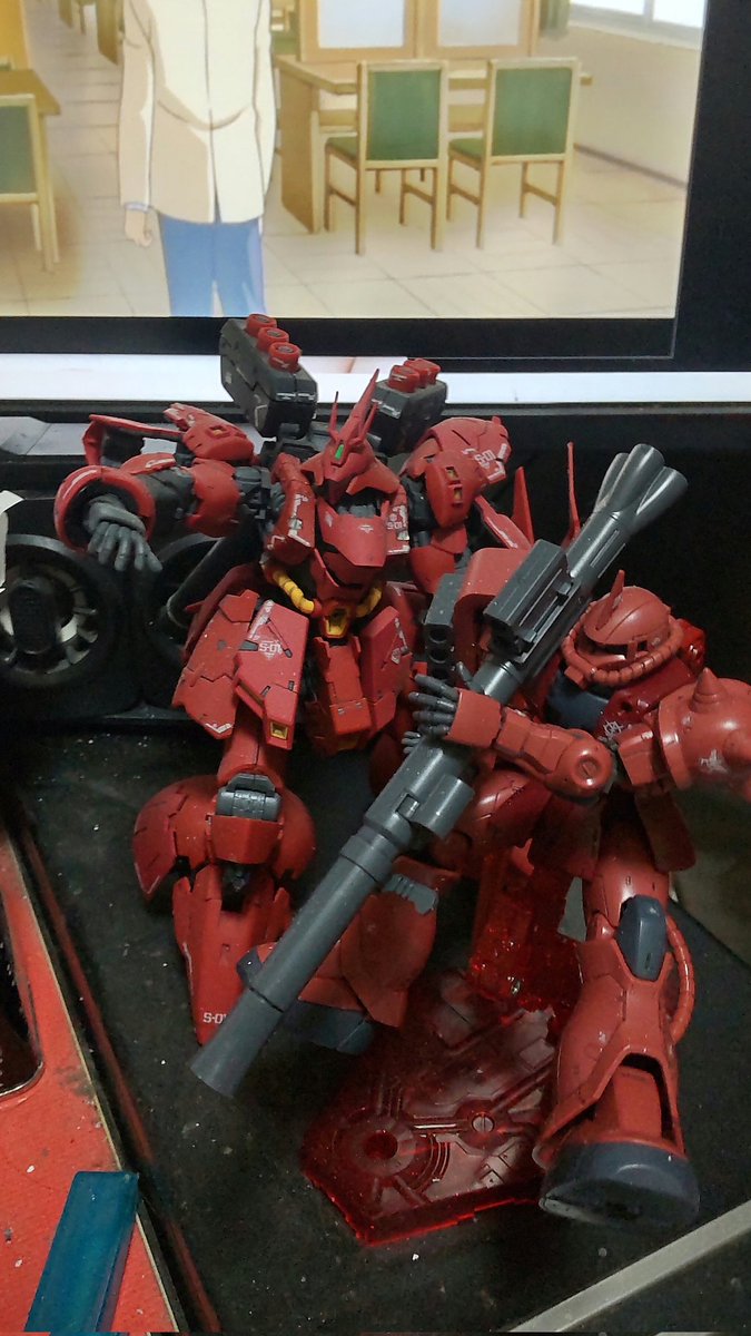 皆様、こんばんは。 RGサザビー本体の塗装完了しました。 後は武装とデカールですが、他の制作しながら、追加武装も作りたいと思います。 #ガンプラ好きと繋がりたい #ガンプラの画像を貼るとRTされると聞いて #サザビーも伊達じゃない