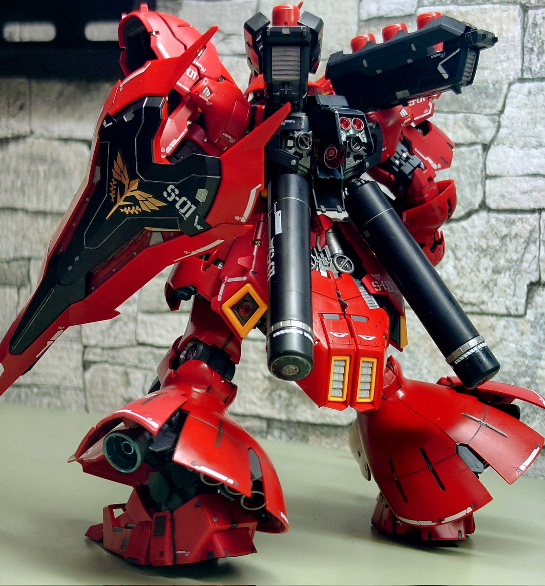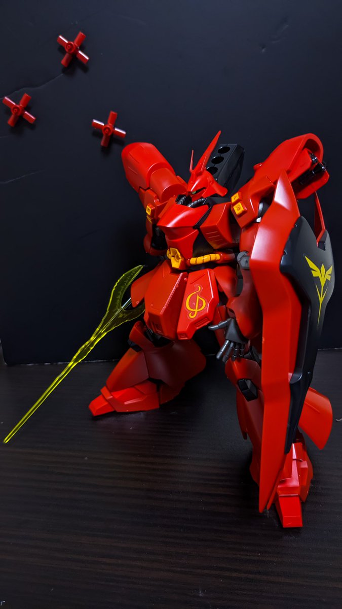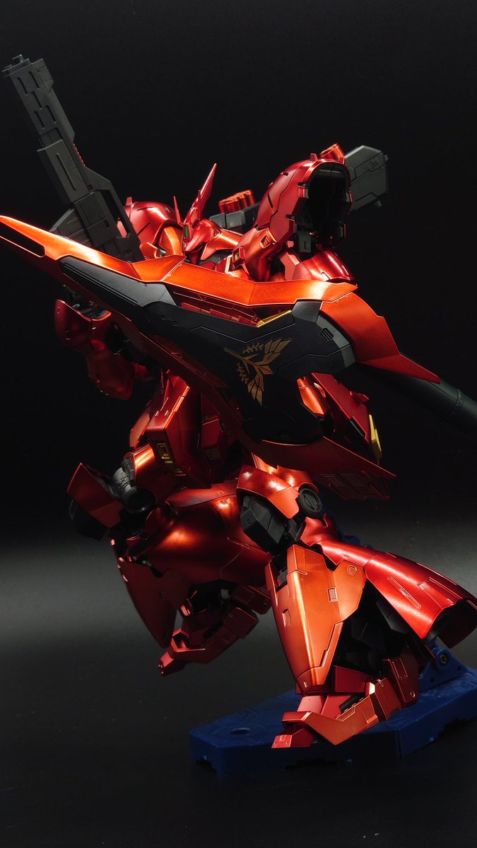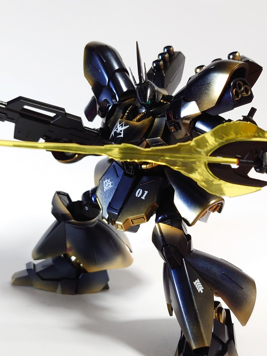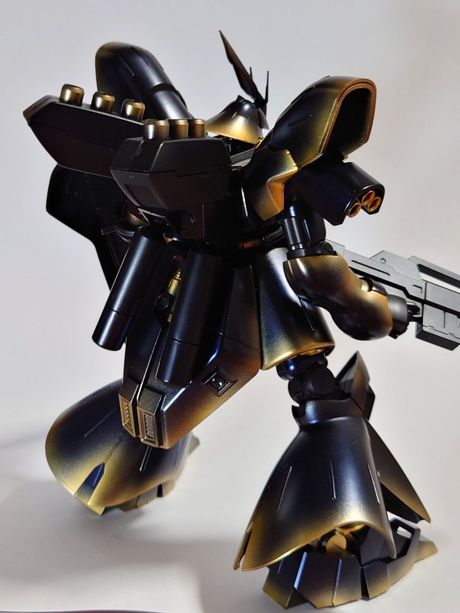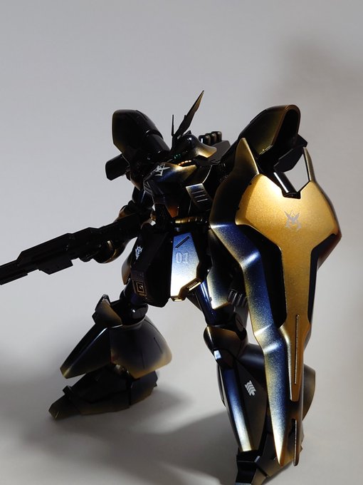 HGサザビー 完成しましたー プリズムブルーブラックを試しに吹いてみて、夜空みたいな色合いだったので、少しゴールドを足して星空イメージの塗装にしてみました。 光沢クリアー吹いたら結構綺麗な仕上がりになったので満足してます。 #サザビー #ガンプラの画像を貼るとRTされると聞いて