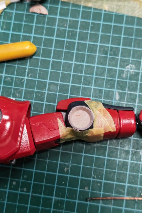 サザンクロスたい❗ 高機動型ザク 腕の肘関節のモールド制作〜😃 ポリパテでスタンプ雄型を作り、ズレや深さの為のストッパー付けていざ😆 ムニュっと❗ 続きます→ #ククルス・ドアンの島 #サザンクロス隊 #ガンプラ