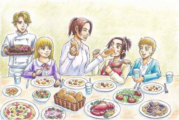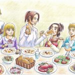サシャお誕生日おめでとう🎉 一生懸命に食べるあなたが好き!! 「土地を奪還すればまた、牛も羊も飼えますから」は、生きることの肯定だなと思う。 食べることは生きること。 #サシャ生誕祭2023 #サシャ・ブラウス生誕祭2023