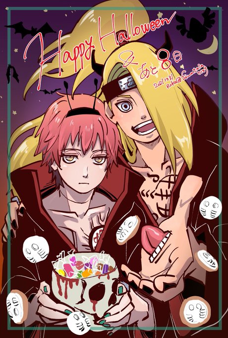 #サソリ誕生日CD2021 ハッピーハロウィン!! そして、あと、8日。 ツノと触覚つけただけの雑コス芸術コンビちゃんが、クッキー(とは限らない)とキャンディ(安全とは言ってない)を配ってます🥰✨🍬🦂🐣🍪✨ 頭蓋骨💀は多分本物です✨