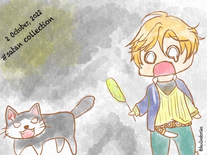 そーちゃん企画のサタコレに参加させていただきました。ありがとう😊 大好きな私服楽しかったです💕 「頼むよ…遊ぼうよ…」 「ほんと、お前、しつこいニャ!💢」 #obeymefanart #ObeyMeSatan #サタンコレクション