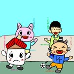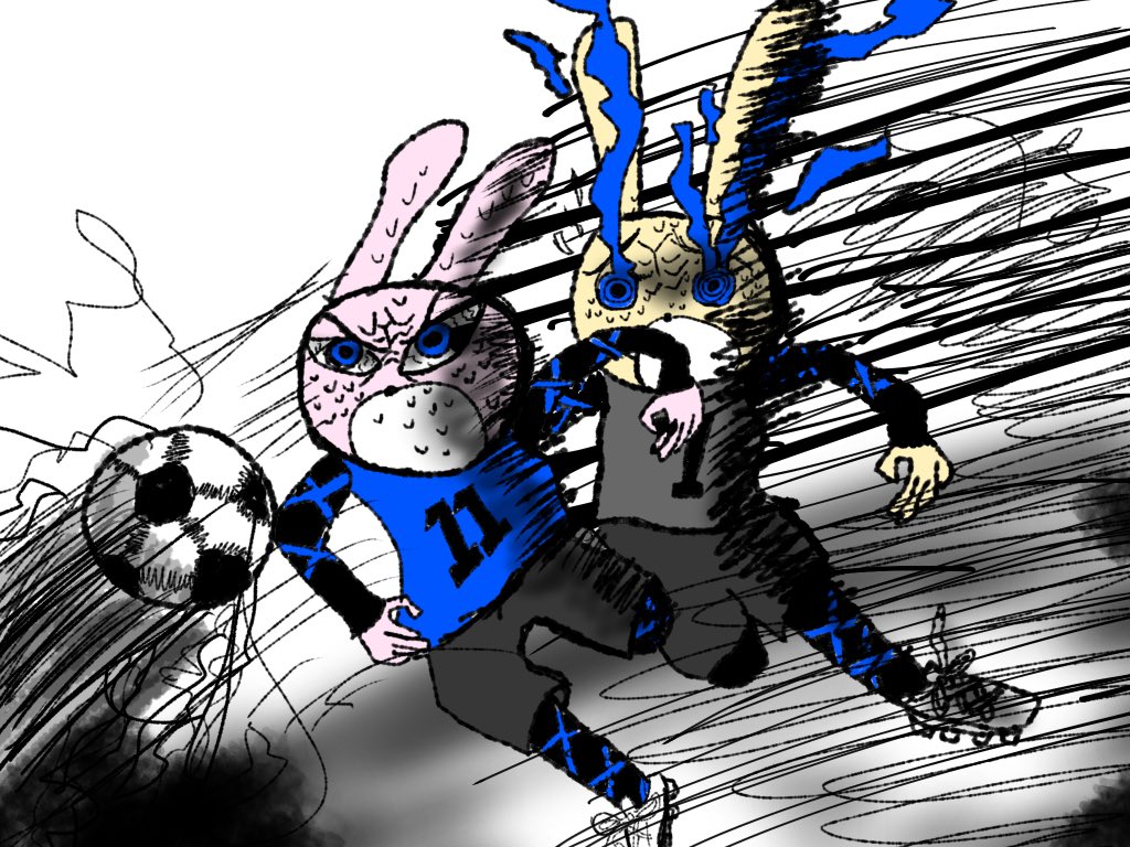 おはようございます☀ 今日は、皆でサッカーをしています。☺️ 僕とみみくんは応援してるだけでサッカーはしてないです。😅 では、今日も宜しくお願いします🙏 #イラスト好きな人と繋がりたい #みんなで楽しむTwitter展覧会 #サッカー