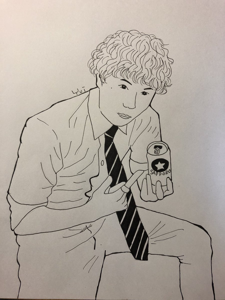 卓さんといえば、黒ラベル⭐ 1日卓さん描いてる気がするw ペン画 #イラスト #絵描きさんと繋がりたい #お絵描き好きさんと繋がりたい #ペン画 #BAWDIES #THEBAWDIES #TAXMAN #サッポロ黒ラベル