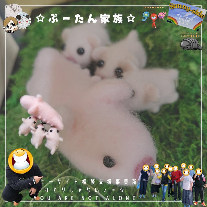 おやつのお時間、眠くなってませんか~? 可愛いぷーたんfamilyのご紹介☆ M隊員の作品です☆ めちゃくちゃ可愛くて癒されちゃう~☆ 元気に育てよーぉ☆ #サニーサイド相談支援事業所 #サニーレンジャー #羊毛フェルト
