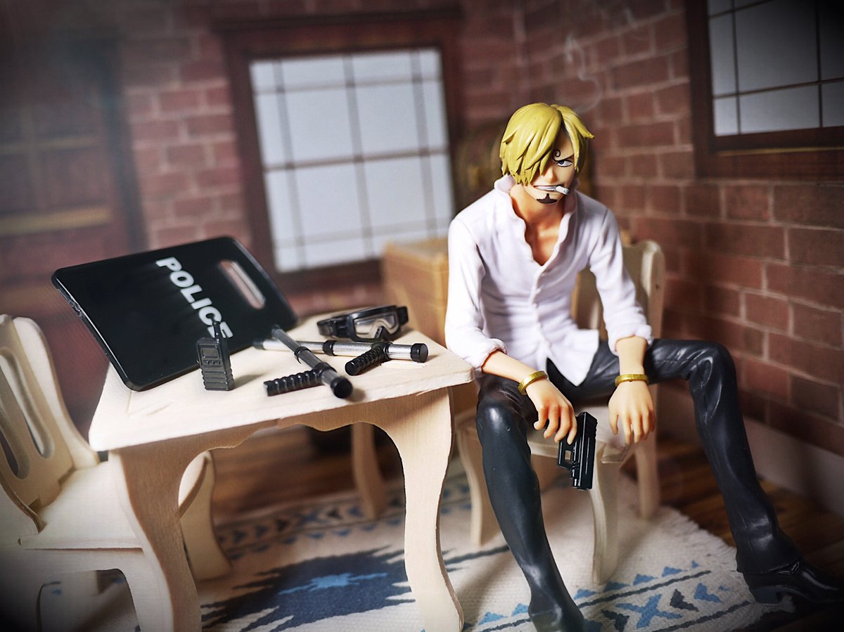 #夜のフィギュア撮影会 11/10 お題 『銃』 過去作 ガチャのサバゲーコレクションゲットしたときに撮ったやつ。 ガスマスク欲しかったなあ… #サバゲーコレクション #ガチャガチャ #カプセルトイ #onepiece #sanji
