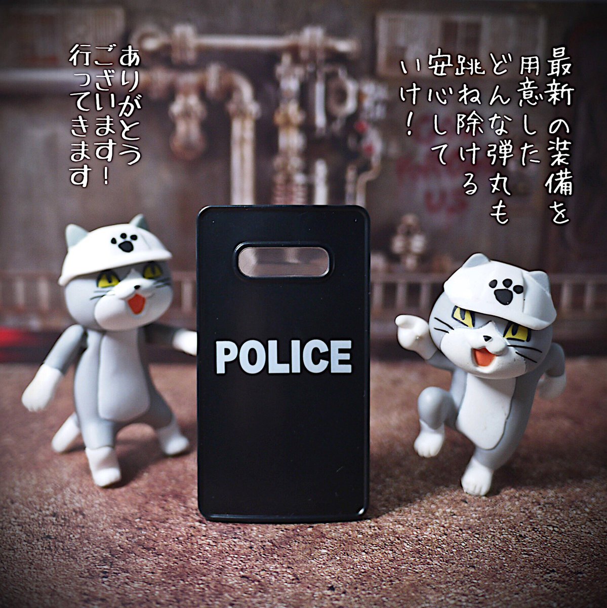 #夜のフィギュア撮影会 4/24 お題 『潜入』過去作 仕事猫警察24時! 最新の装備を手に単身犯罪組織のアジトに潜入する仕事猫警察官。 #仕事猫 #サバゲーコレクション #ガチャガチャ #カプセルトイ