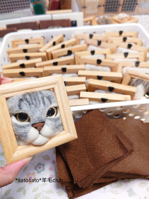 昨日の子は可愛い #サバトラ になりました🐱💕 #羊毛フェルト #猫フレーム #クリマ(M-621,622) #猫好きさんと繋がりたい twitter.com/fujita_satomi/…
