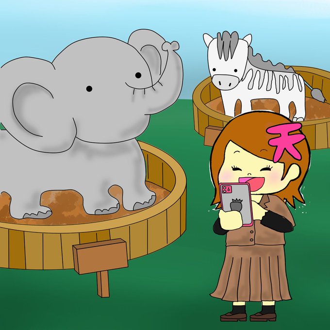 動物園で おっきいゾウさん🐘 かっこいいライオン🦁 たっくさん写真に収めます #動物園 #サファリパーク #그림 #illustration #イラスト #イラスト好きな人と繋がりたい #絵描きさんと繋がりたい #ゆるいイラスト