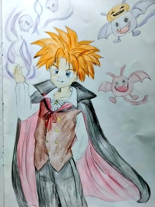 ハロウィン風 サマルくん描いた ドラキュラサマルトリアの王子 ザラキ 加工と原画 合成 #サマルトリアの王子 #サマル #ドラクエ2 #ドラクエ2イラスト #DQ2 #ドラクエイラスト #ドラゴンクエスト