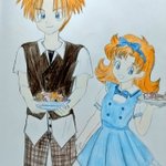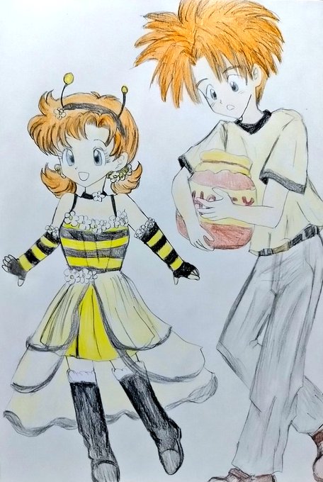8月3日 はちみつの日 サマルくんは はちみつパーティーの準備 妹ちゃんは、お着替え完了 加工と原画 #DQ2 #ドラクエ2 #サマルトリアの王子 #サマルトリアの王女 #はちみつの日 #アナログイラスト
