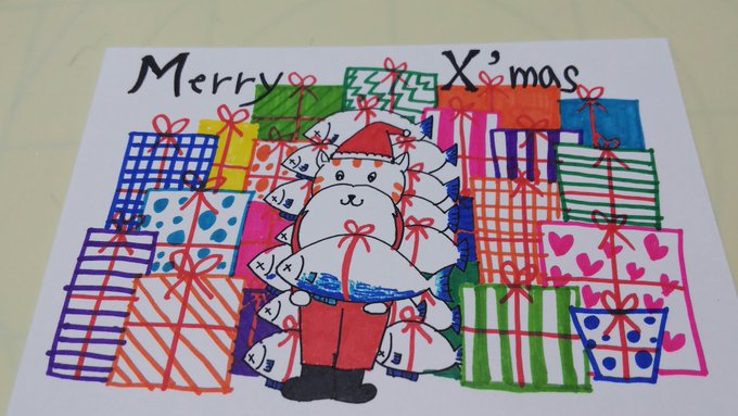 おはようございます!! 今日も無理なく楽しく行きましょう! 素敵な水曜日を〜😆 (#サマークリスマス) ことらから、プレゼント💕 #イラスト好きな人と繋がりたい #絵描きさんと繫がりたい #イラスト