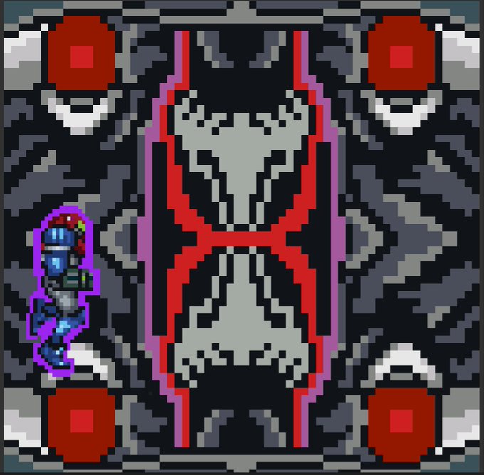 昨日作ったよくわかんないやつ、メトロイドとか悪魔城とかの背景にありそうだなって思ってとりあえずサムスを入れてみた サムスは私の地力では描けないので模写させていただきました #ドット絵 #pixelart #METROID #サムス #イラスト練習中 #イラスト好きな人と繋がりたい #イラスト好きと繋がりたい