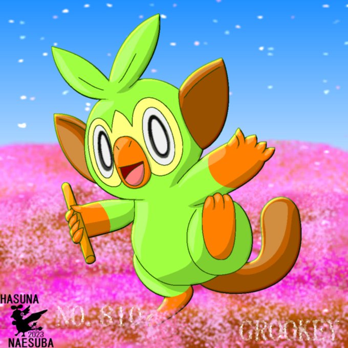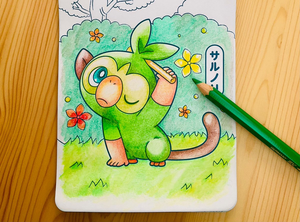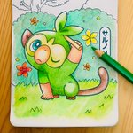 サブ垢で載せた今日描いたイラストです~(*^^*) #サルノリ #ニャオハ #ポケモン #イラスト #お絵描き #pokémon #お絵描き好きな人と繋がりたい #イラスト好きな人と繋がりたい