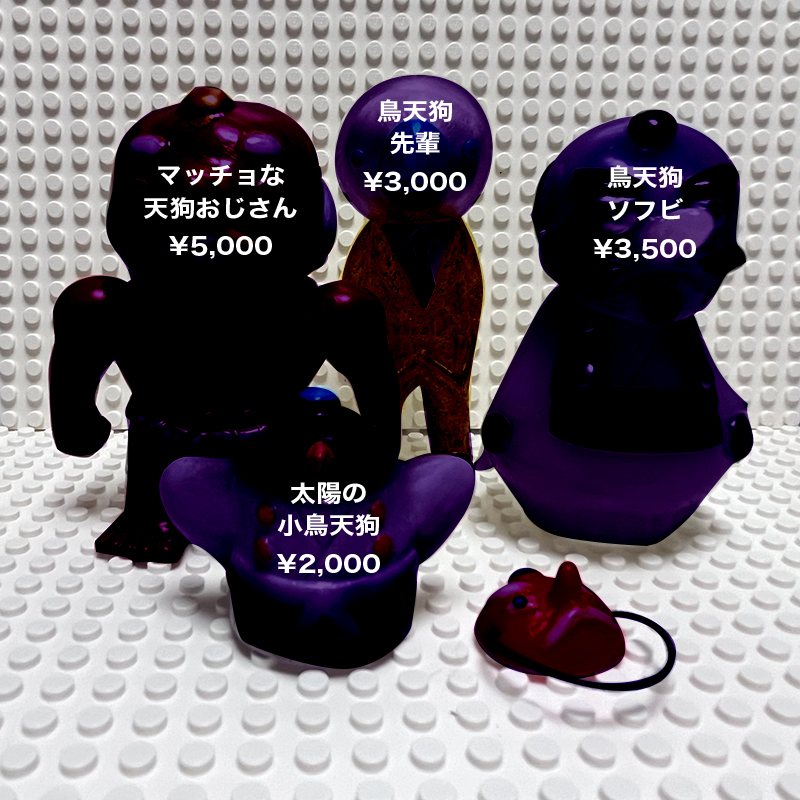 5/4「#創作ソフビ決起集会」ブースNo.15 #サンガッツ本舗 さんのブースにて、お手伝いと 少し販売させていただきます。 持参アイテムはこれらです。先日のイベントアイテム そのまんま! ぜひ! #てんぐアート